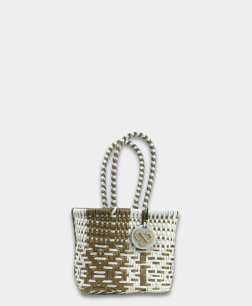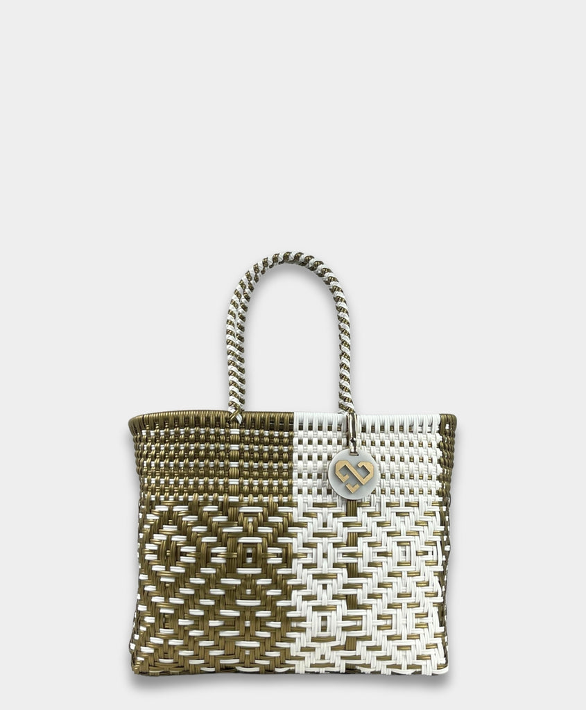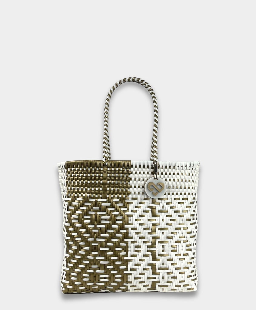Maria Victoria | Duo Tote | Upcycled, Handwoven, White/Gold Tote