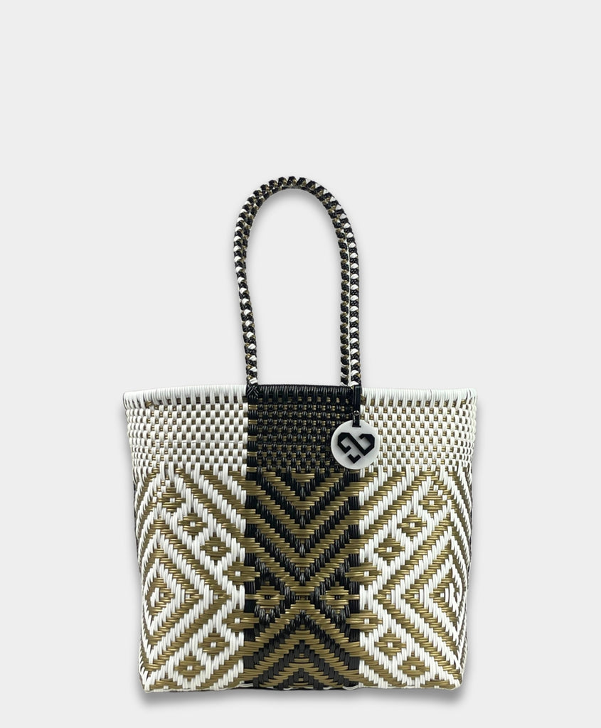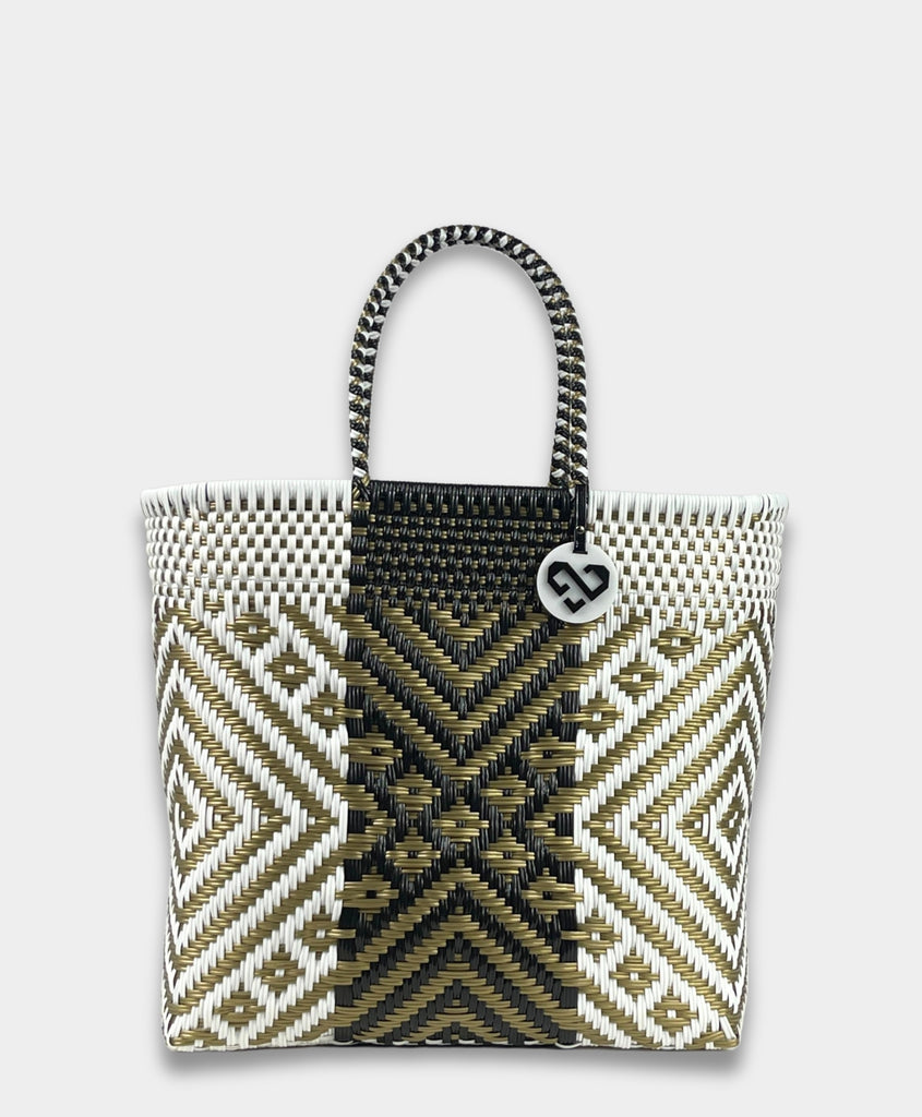 Maria Victoria | Gatsby Tote | Upcycled, Handwoven, White/Black/Gold Tote