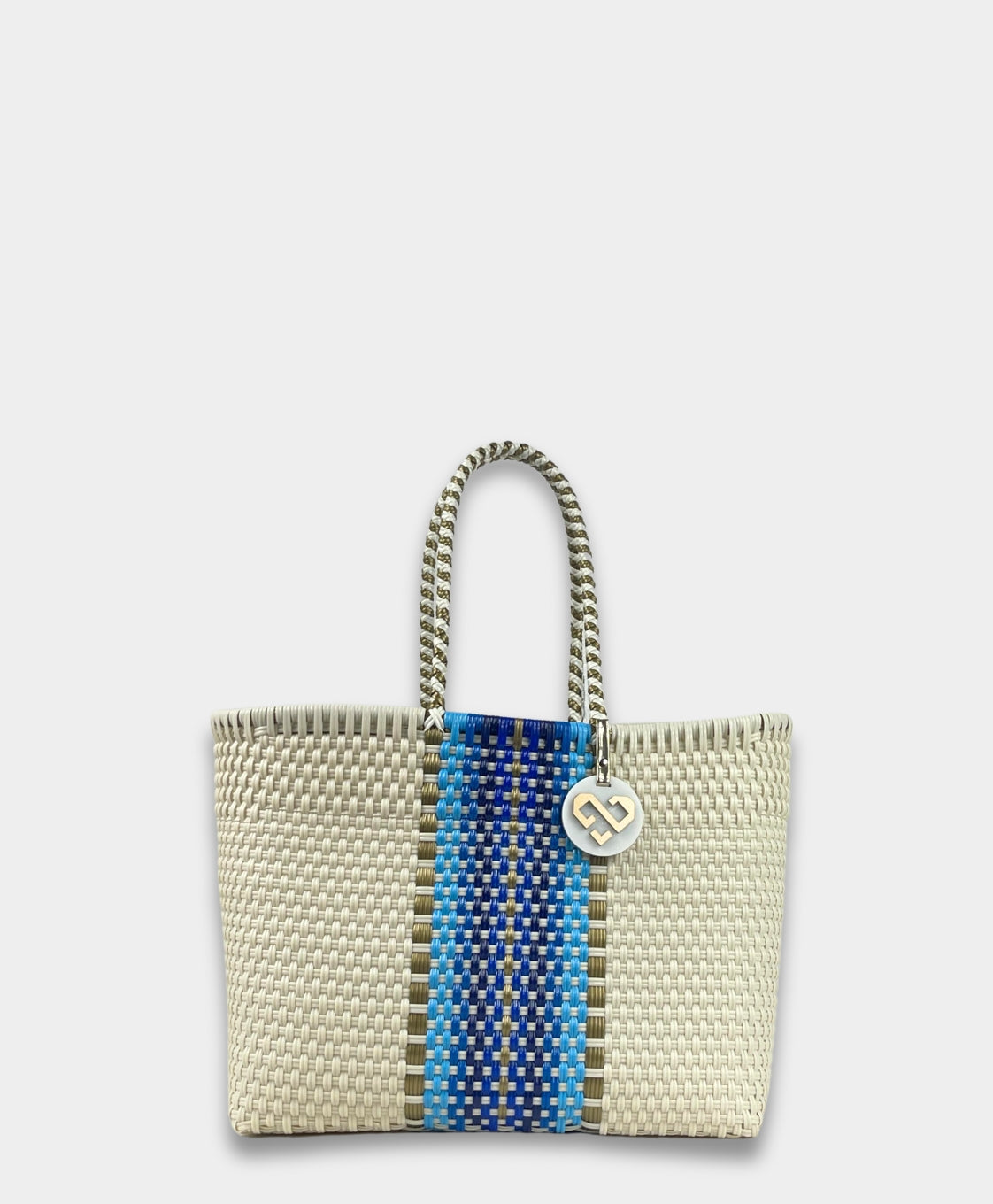 Maria Victoria | Cabo Tote | Upcycled, Handwoven, Ivory&blues Tote