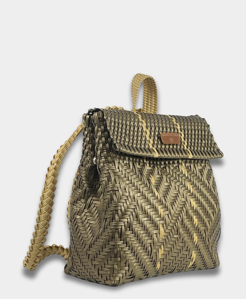 Maria Victoria | Glimmer Golden BK | Upcycled, Handwoven, Backpack