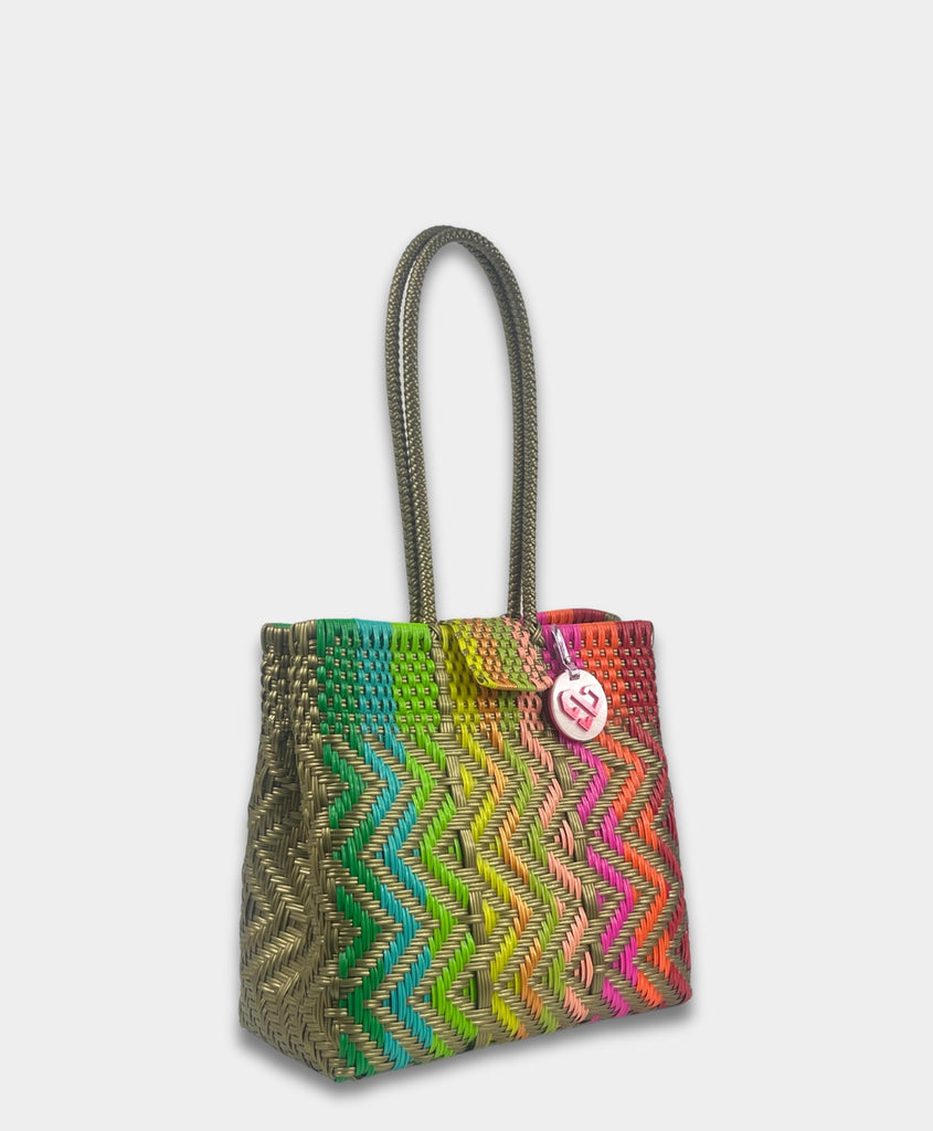 The Shoulder Bag, has an elegant handwoven design. Made from upcycled plastic, offers a sustainable twist to a classic accessory. With comfortable strap, it’s perfect for hands-free convenience while adding an eco-conscious touch to your wardrobe.