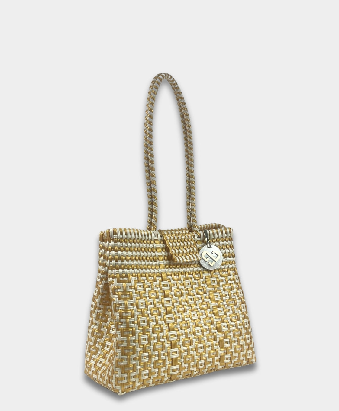 The Shoulder Bag, has an elegant handwoven design. Made from upcycled plastic, offers a sustainable twist to a classic accessory. With comfortable strap, it’s perfect for hands-free convenience while adding an eco-conscious touch to your wardrobe.