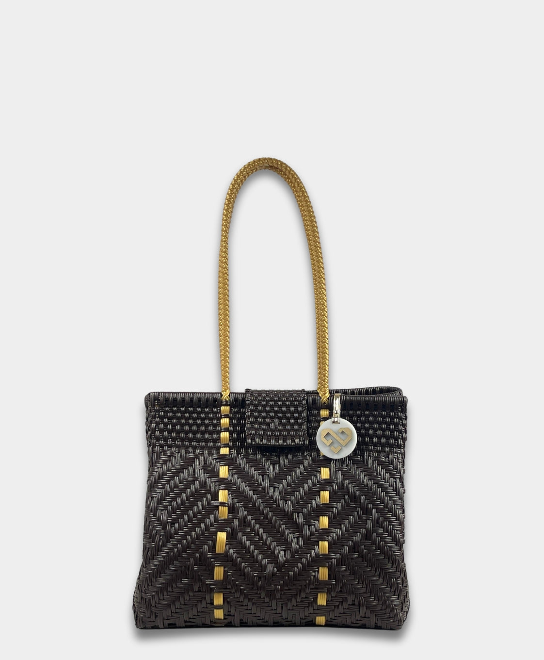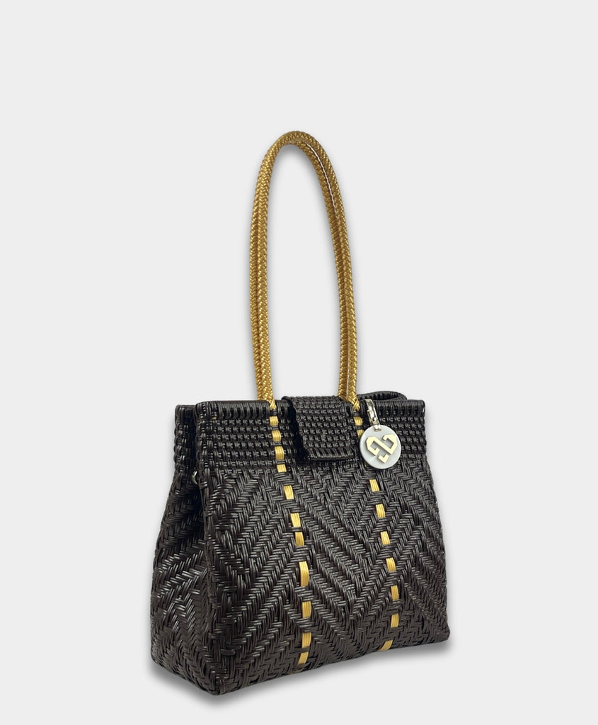The Shoulder Bag, has an elegant handwoven design. Made from upcycled plastic, offers a sustainable twist to a classic accessory. With comfortable strap, it’s perfect for hands-free convenience while adding an eco-conscious touch to your wardrobe.