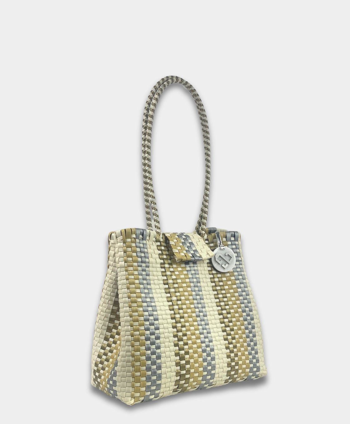 The Shoulder Bag, has an elegant handwoven design. Made from upcycled plastic, offers a sustainable twist to a classic accessory. With comfortable strap, it’s perfect for hands-free convenience while adding an eco-conscious touch to your wardrobe.