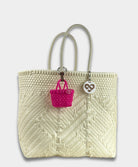 Revamp your bag or keychain with our Tiny Tote Charms. A sustainable and stylish accessory handwoven from recycled plastic. Show off your eco-friendly fashion sense with a variety of colors to choose from. Each charm is a miniature replica of our beloved totes, carefully crafted with a commitment to reducing waste. Make a conscious choice with these charming additions, whether for yourself or as a thoughtful gift.
