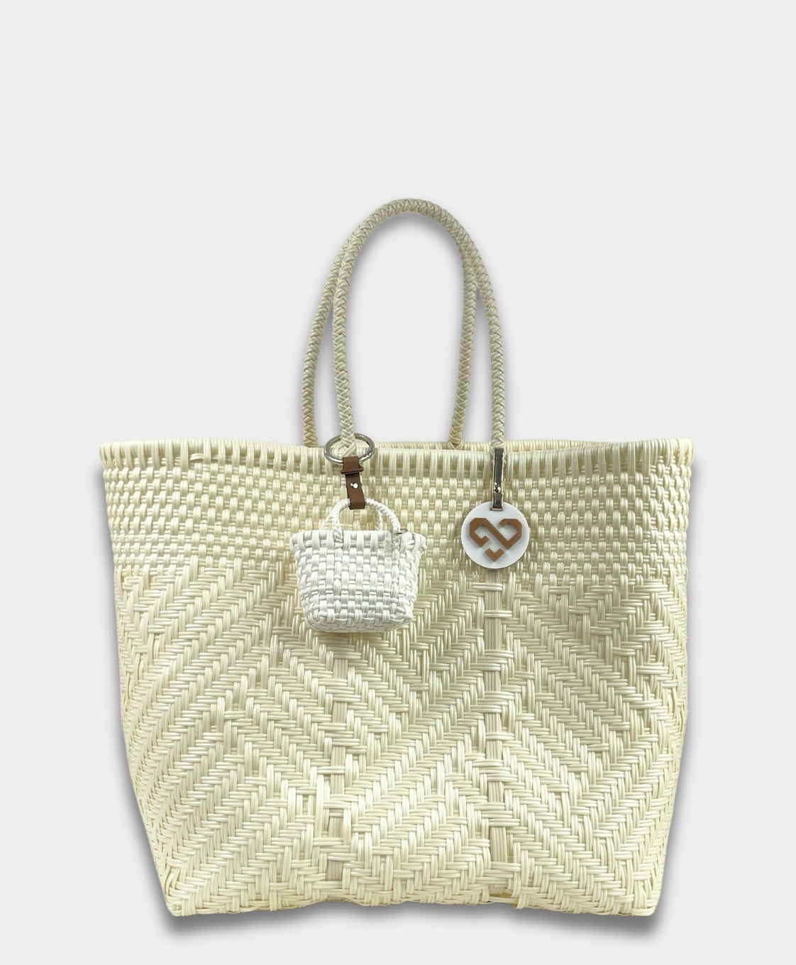 Revamp your bag or keychain with our Tiny Tote Charms. A sustainable and stylish accessory handwoven from recycled plastic. Show off your eco-friendly fashion sense with a variety of colors to choose from. Each charm is a miniature replica of our beloved totes, carefully crafted with a commitment to reducing waste. Make a conscious choice with these charming additions, whether for yourself or as a thoughtful gift.