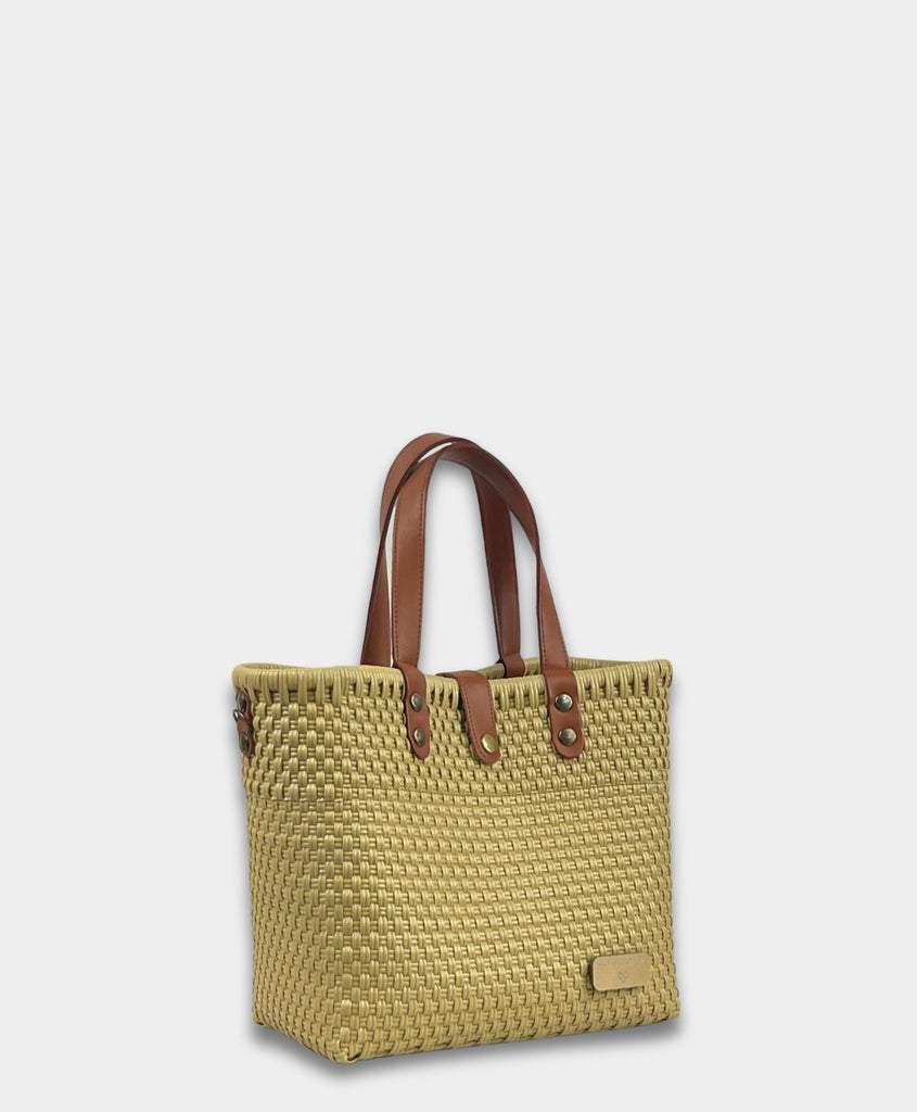 The Crossbody Bag is handcrafted from upcycled plastic, effortlessly combining sustainability and style. Its sleek design and comfortable leather strap offer hands-free convenience, while adding an eco-friendly touch to your wardrobe. The durable leather handle adds both sophistication and longevity. This stunning bag is both functional and fashionable, making it the ideal accessory for any occasion.