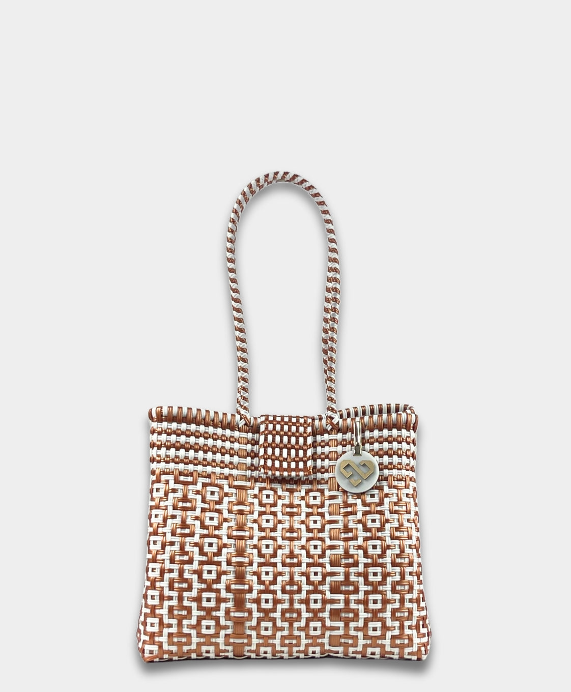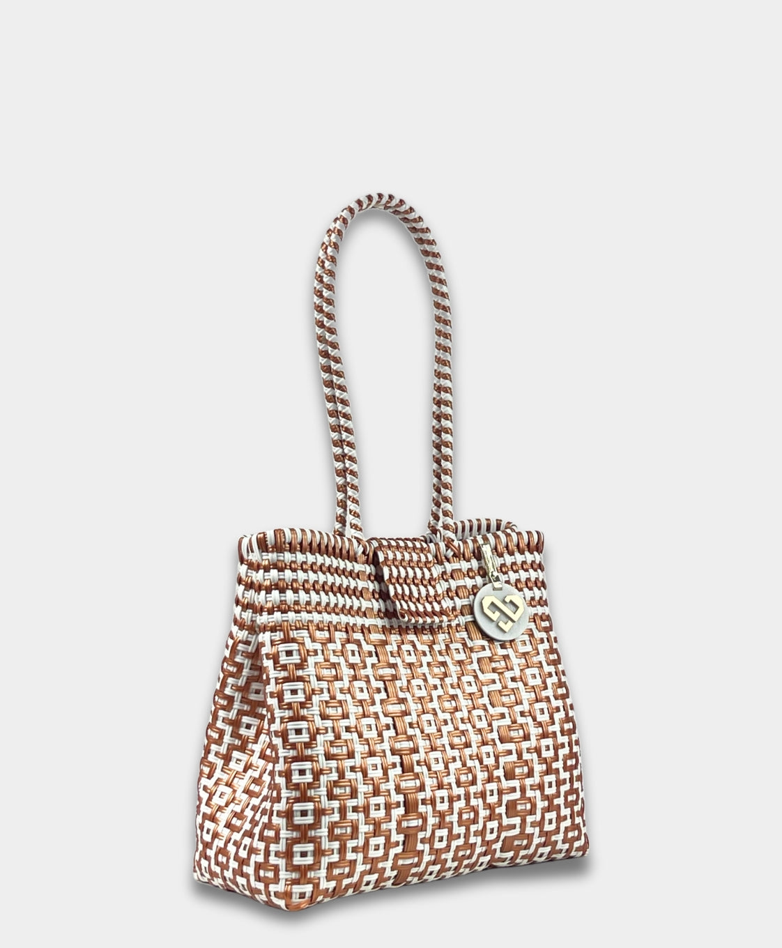 The Shoulder Bag, has an elegant handwoven design. Made from upcycled plastic, offers a sustainable twist to a classic accessory. With comfortable strap, it’s perfect for hands-free convenience while adding an eco-conscious touch to your wardrobe.