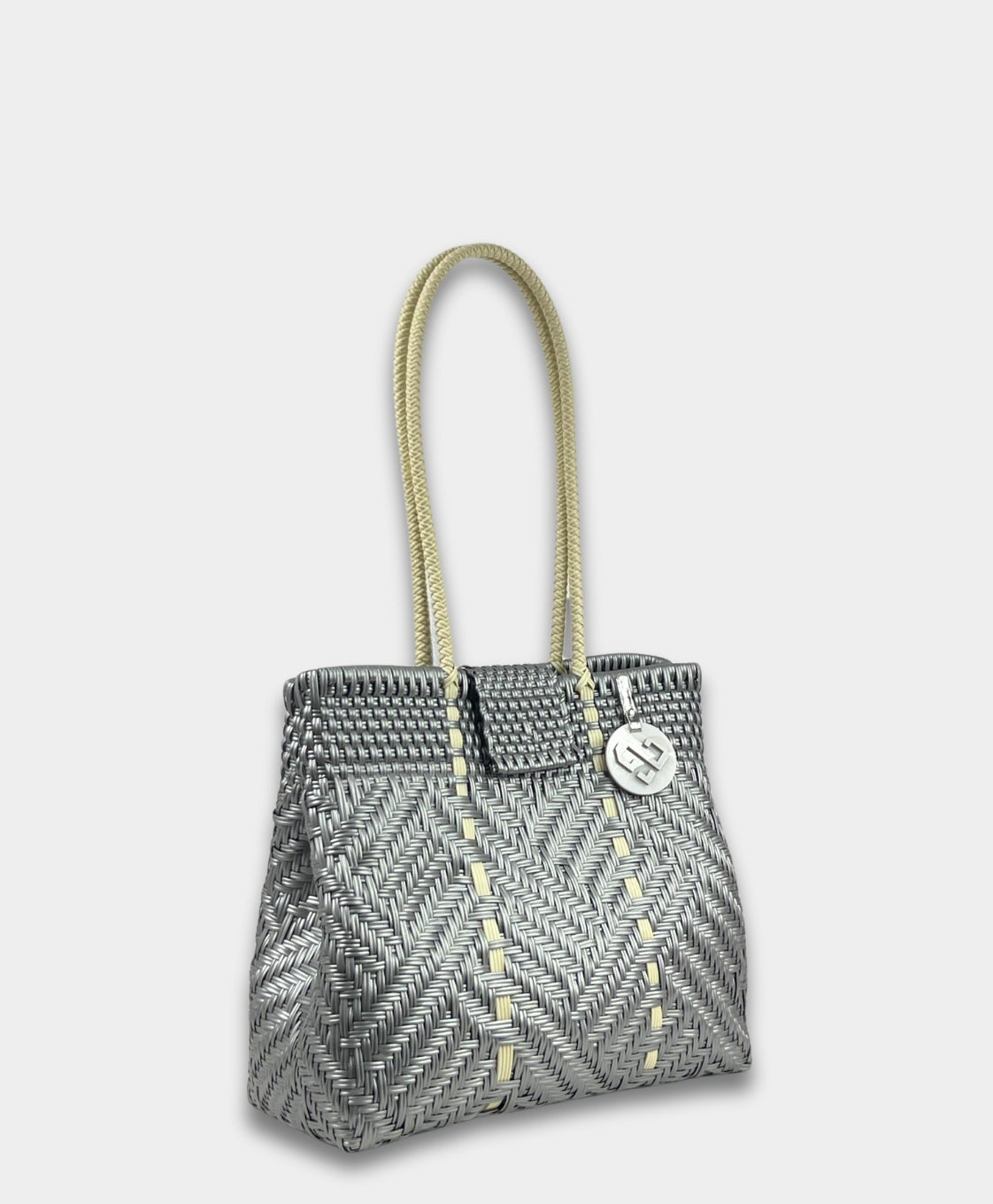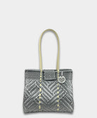 The Shoulder Bag, has an elegant handwoven design. Made from upcycled plastic, offers a sustainable twist to a classic accessory. With comfortable strap, it’s perfect for hands-free convenience while adding an eco-conscious touch to your wardrobe.