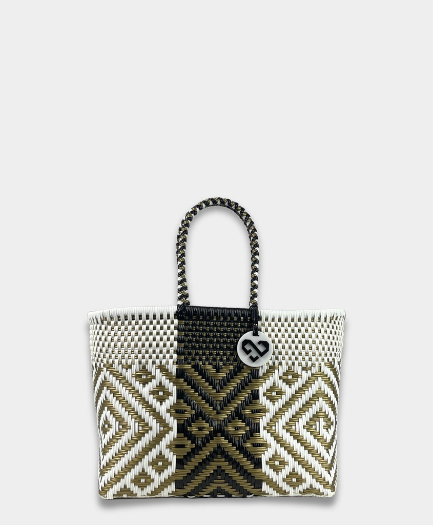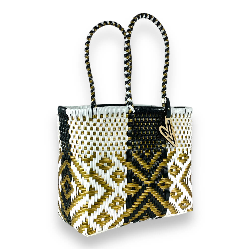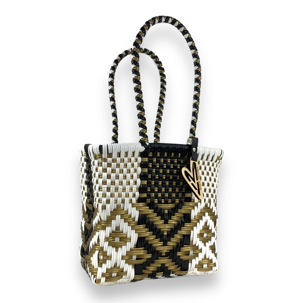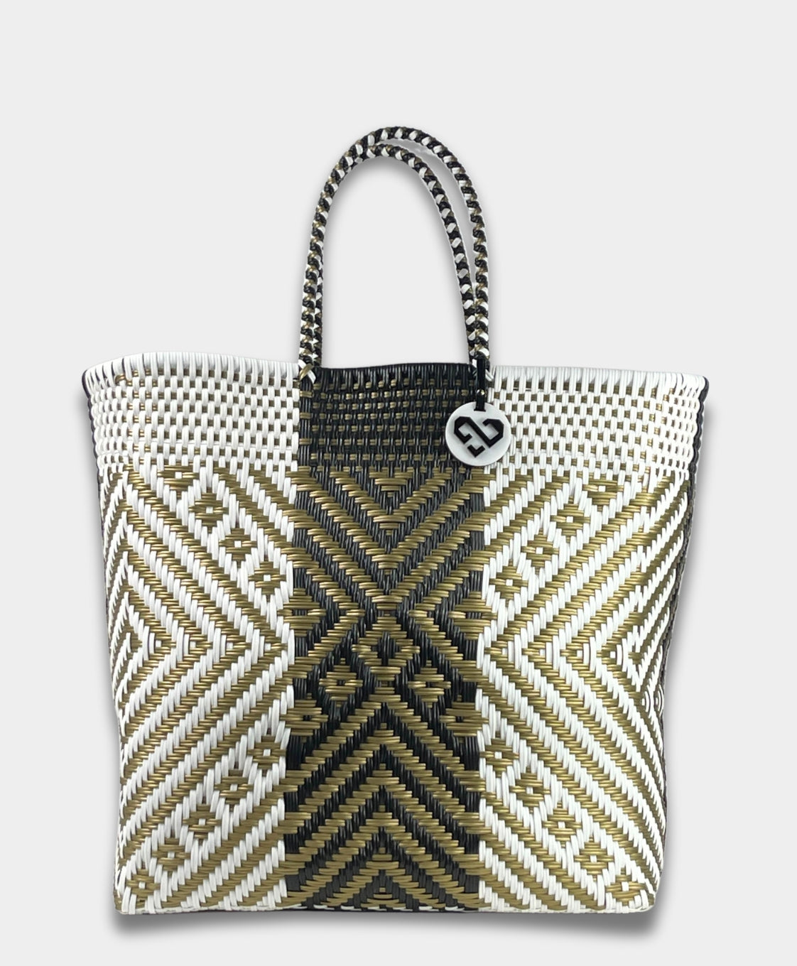 Maria Victoria | Gatsby Tote | Upcycled, Handwoven, White/Black/Gold Tote