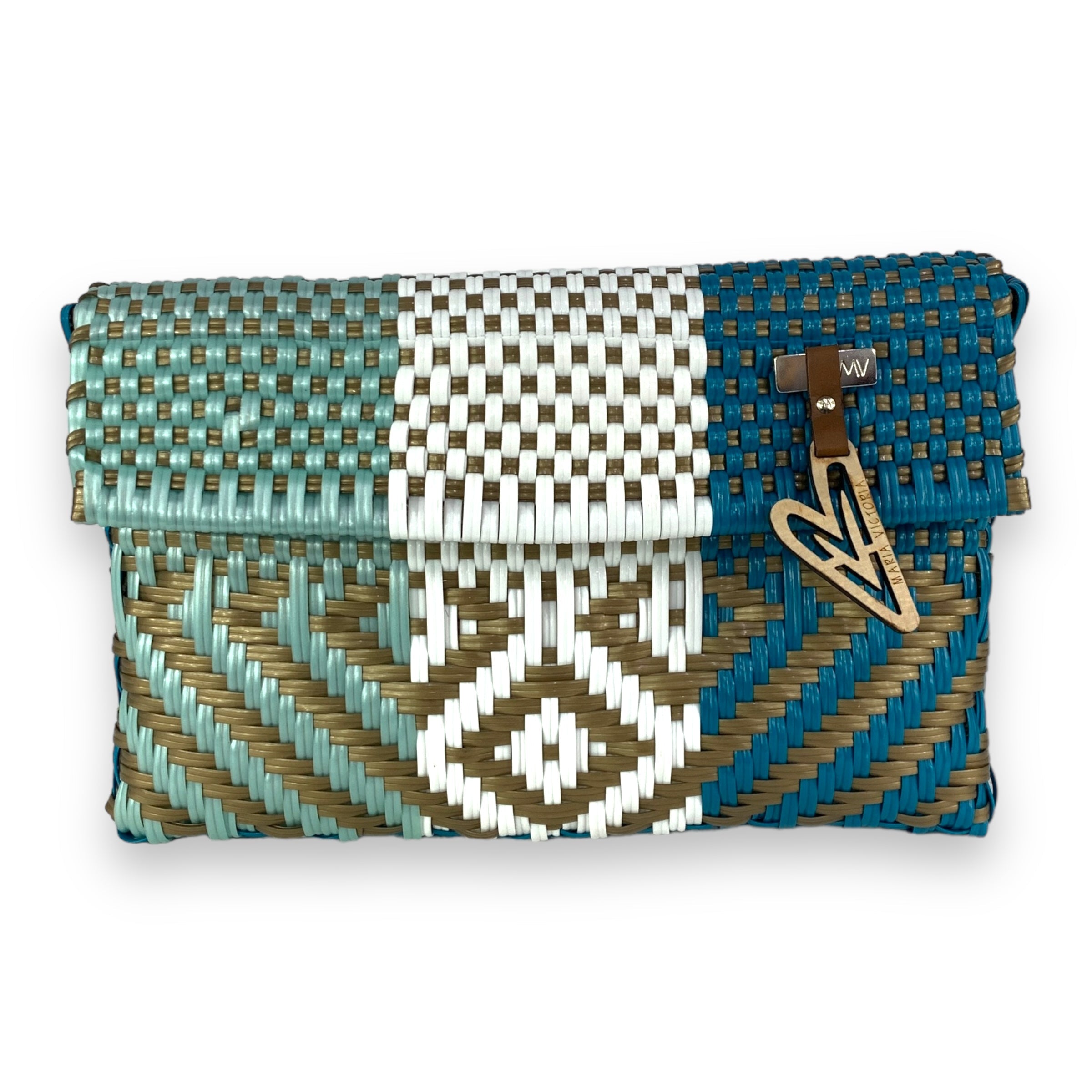 This sophisticated wristlet elevates your essentials with a touch of luxury. Featuring the timeless Maria Victoria design in a captivating handwoven pattern, it adds effortless style to your daily routine.