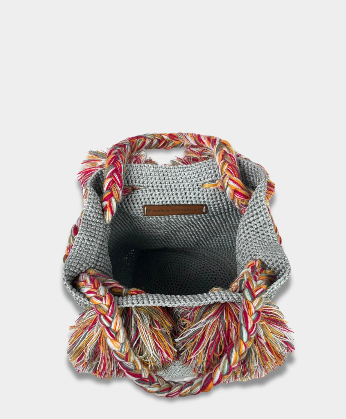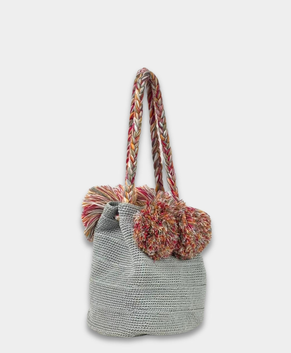 Maria Victoria: Pom Pom Grey Bucket Bag | Handcrafted in Zinacantán