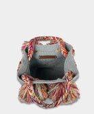 Maria Victoria | Pom Pom Grey Bucket Bag | Handwoven, Zinacantán Artistry, Nylon