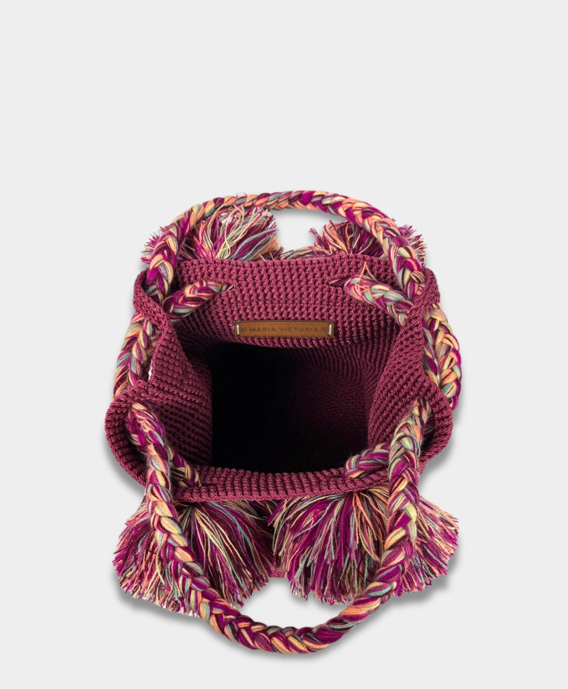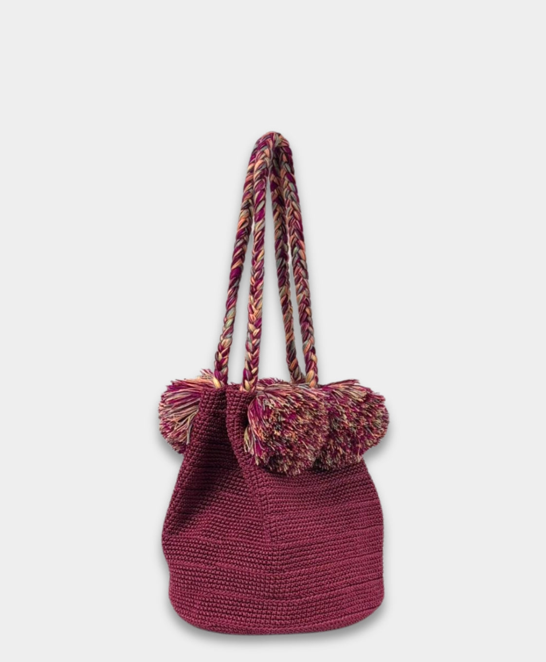 Maria Victoria: Pom Pom Purple Bucket Bag | Handcrafted in Zinacantán
