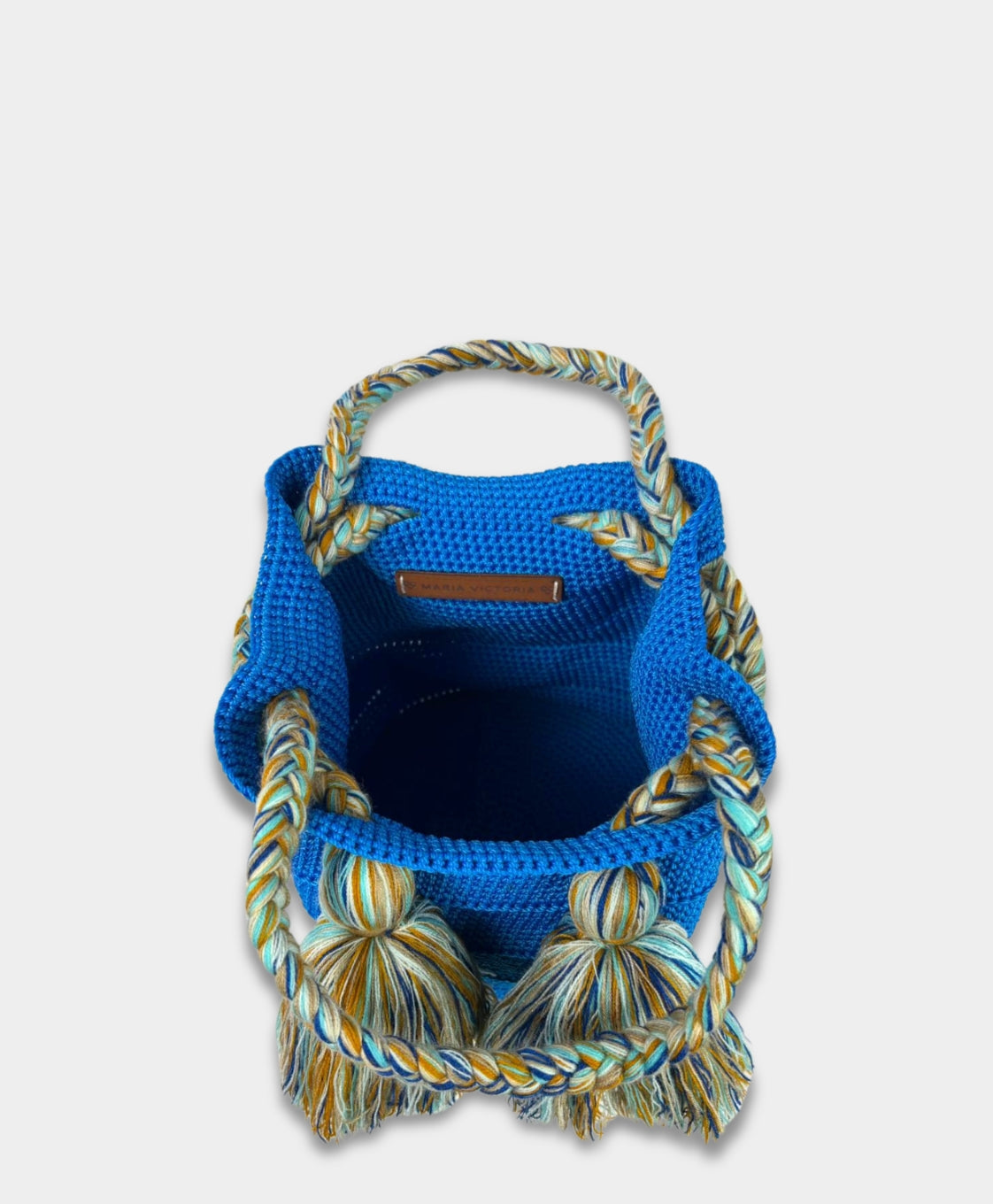 Maria Victoria | Tassel Royal Blue Bucket Bag | Handwoven, Zinacantán Artistry, Nylon