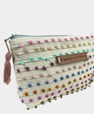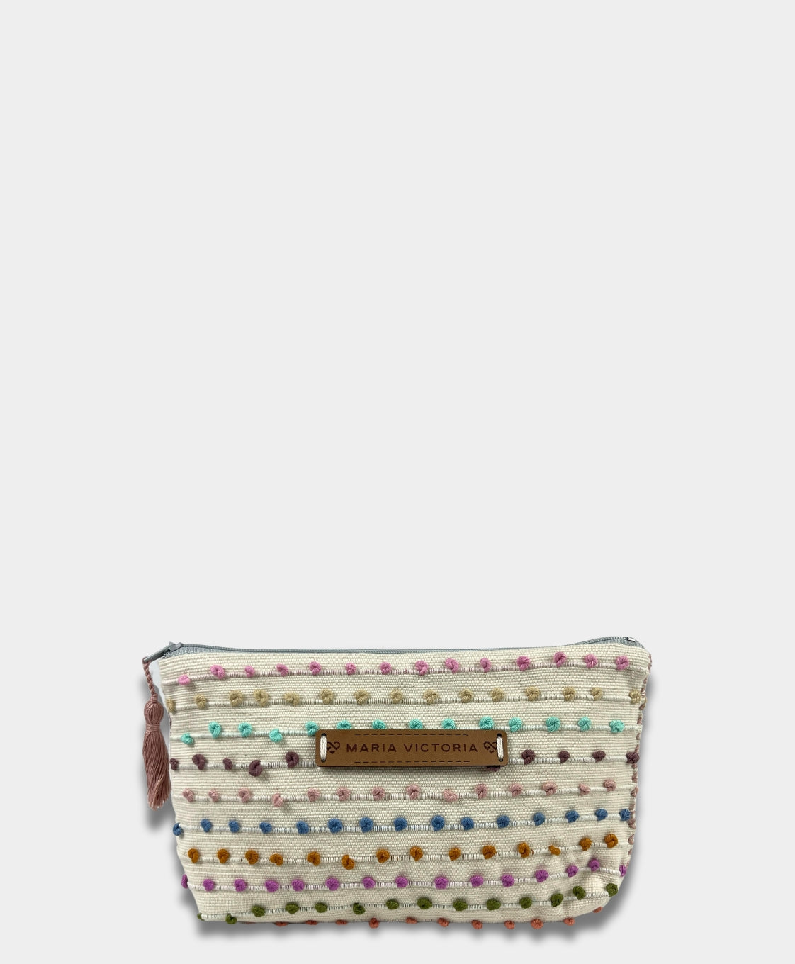 The Chabela Makeup Bag is the perfect pouch for carrying all your skincare essentials on any trip or busy day. Its compact design fits wherever you need it to be. Crafted with artisanal techniques, it features vibrant fabrics and threads that effortlessly complement any style. Plus, the zipper is adorned with a mini charm for an extra special touch. Lightweight, stylish, and effortlessly practical, ready for every adventure!