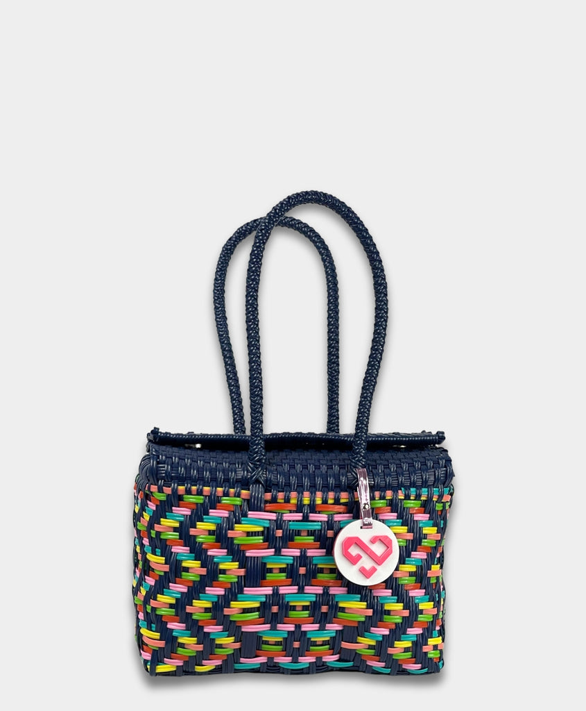 Inspired by traditional craftsmanship, this handwoven basket bag is created from upcycled plastic, offering durability and charm. Its spacious interior makes it perfect for market trips, beach days, or casual outings. Available in different sizes, this eco-friendly basket is a must-have for those who appreciate timeless design and sustainability. Available in different sizes.