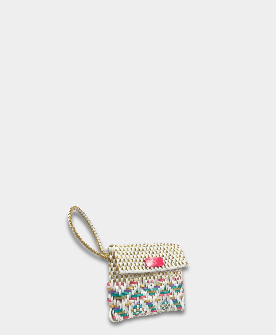 The Wristlet Bag is the perfect combination of sustainability and style. crafted from recycled plastic, each bag boasts a distinctive, vibrant design, making it a bold fashion embodiment. It´s handwoven construction guarantees longevity while maintaining a lightweight feel, perfect for both everyday wear and special occasions. With ample room for your essentials such as Phone, Keys, And Wallet, and a practical wrist strap.